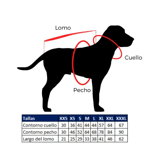 Mide a tu perro desde la parte mas ancha del pecho y la longitud de la espalda.